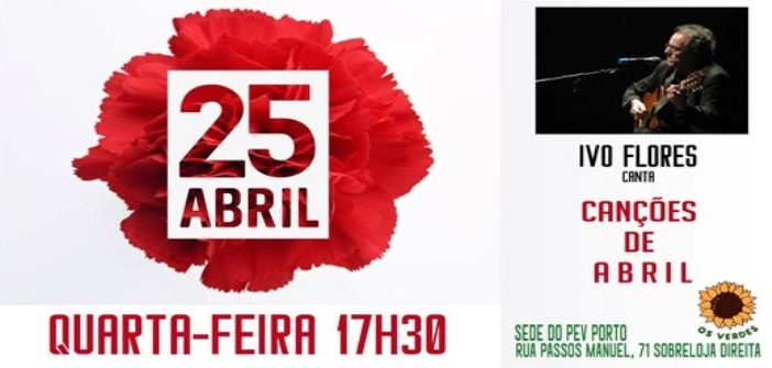 No final das comemorações nos Aliados, vem brindar a Abril, a partir das 17h30, na sede do Porto do Partido Ecologista «Os Verdes», vem cantar com o Ivo Flores, traz poemas e amigos.